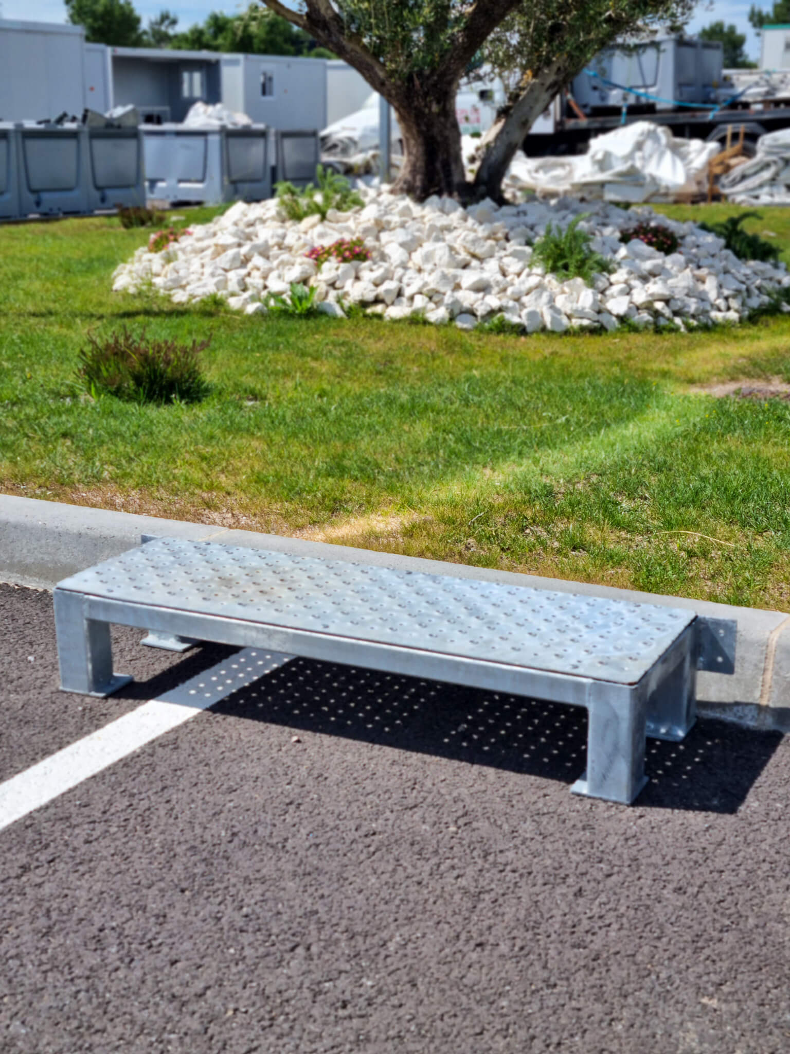 Selon la pente de votre sol, l’inclinaison souhaitée, la hauteur du module, nous vous construisons une rampe d’accès sur mesure.